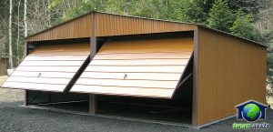 Najczęściej wybierany model przez klientów posiadają uchylne bramy, które jeśli klient wyrazi takie życzenie możemy wykonać również w układzie poziomym charakteryzującym się szerokim panelem. Dzięki temu rozwiązaniu garaż blaszany drewnopodobny zyskuje jeszcze wiarygodniejsze podobieństwo do konstrukcji wykonanej z naturalnego drewna. Dodatkowym atutem jest montaż drzwi wejściowych zlokalizowanych na jednej ze ścian a nawet w samym skrzydle bramy.